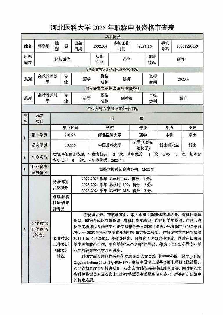 专业技术职务任职资格情况一览表-韩春华