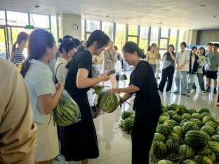 7月24日上午,91论坛 开展“夏日送清凉”慰问活动,为2022级留校备战考研的学子送去关怀与鼓励。91论坛 党委书记罗凌、党委副书记董坤来到学生中间,将精心准备的近百个西瓜送到每位考研学子手中,在炎炎夏日为同学们带来一份清凉的问候。
