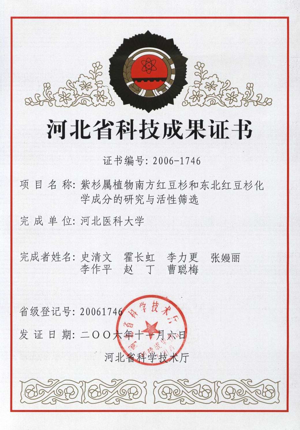 2006-11史清文主持的南方红豆杉和东北红豆杉化学成分