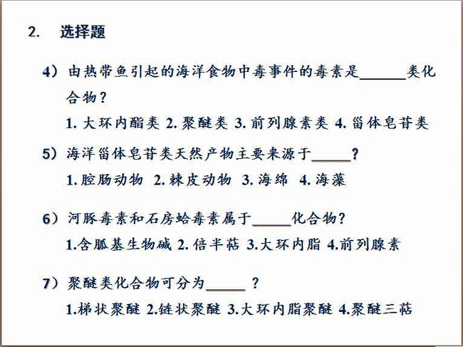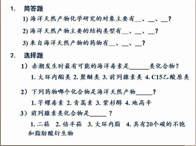 《第十章 海洋药物复习题(2019)》(史清文教授提供)